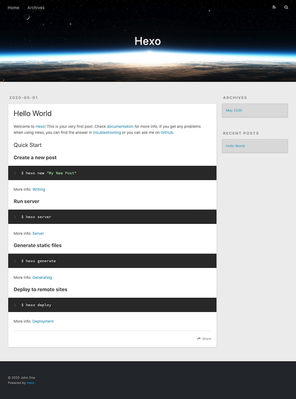 In this post, I will show you a simple and free way to create blog site for your own with Github and Hexo.
