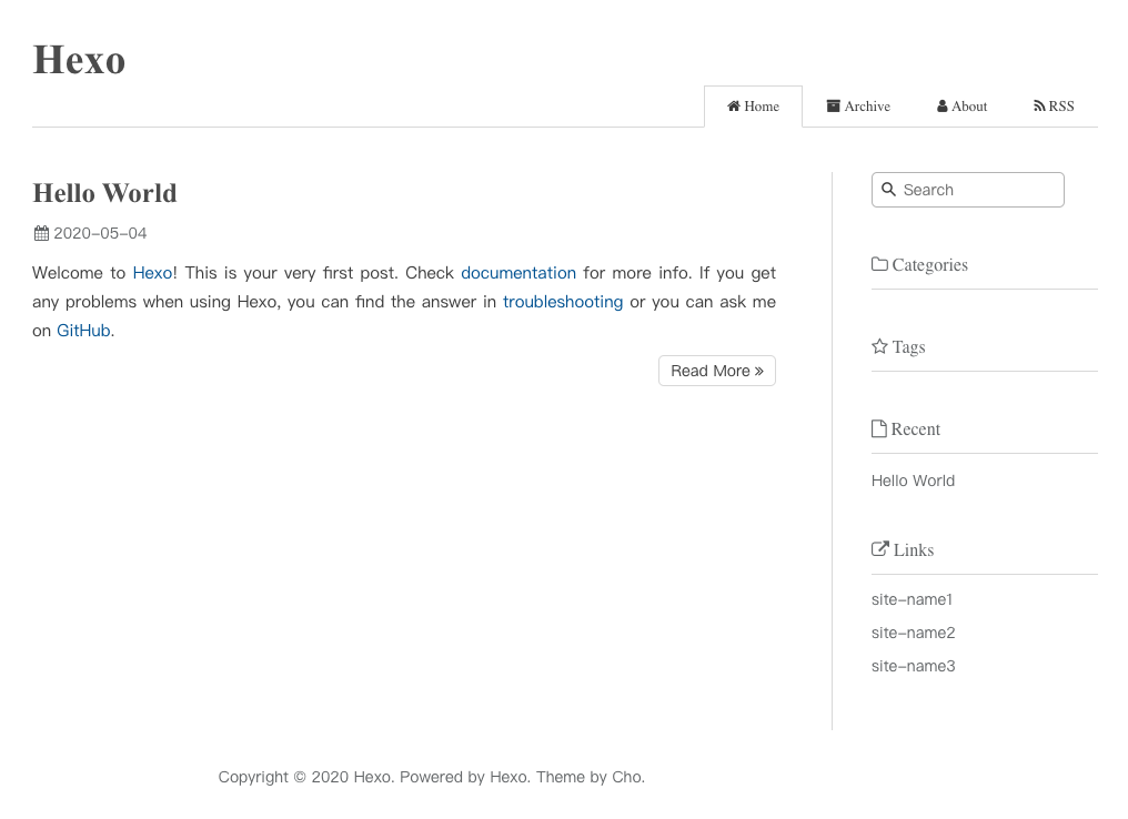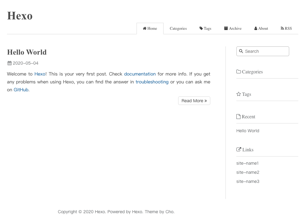 Launch blog now, we can find the ‘Categories’ and ‘Tags’ menu there. Click them, just empty page now. They will be filled after we added posts and mark the posts with category and tags.